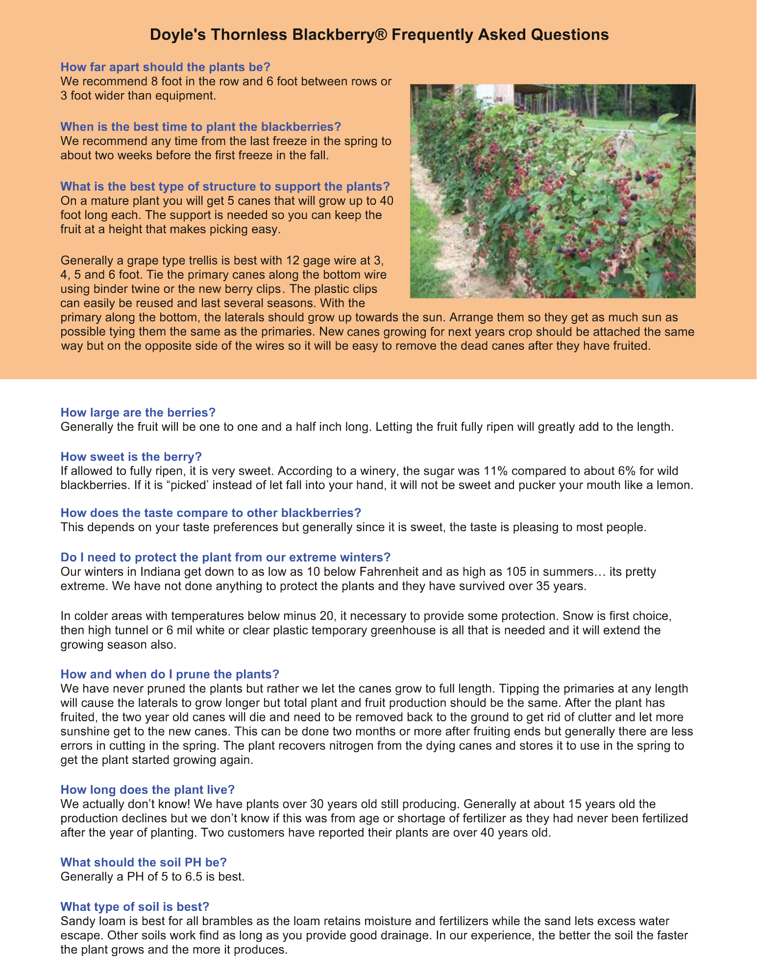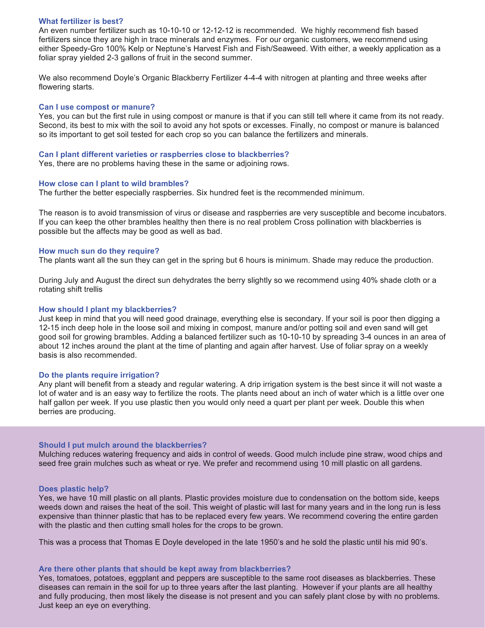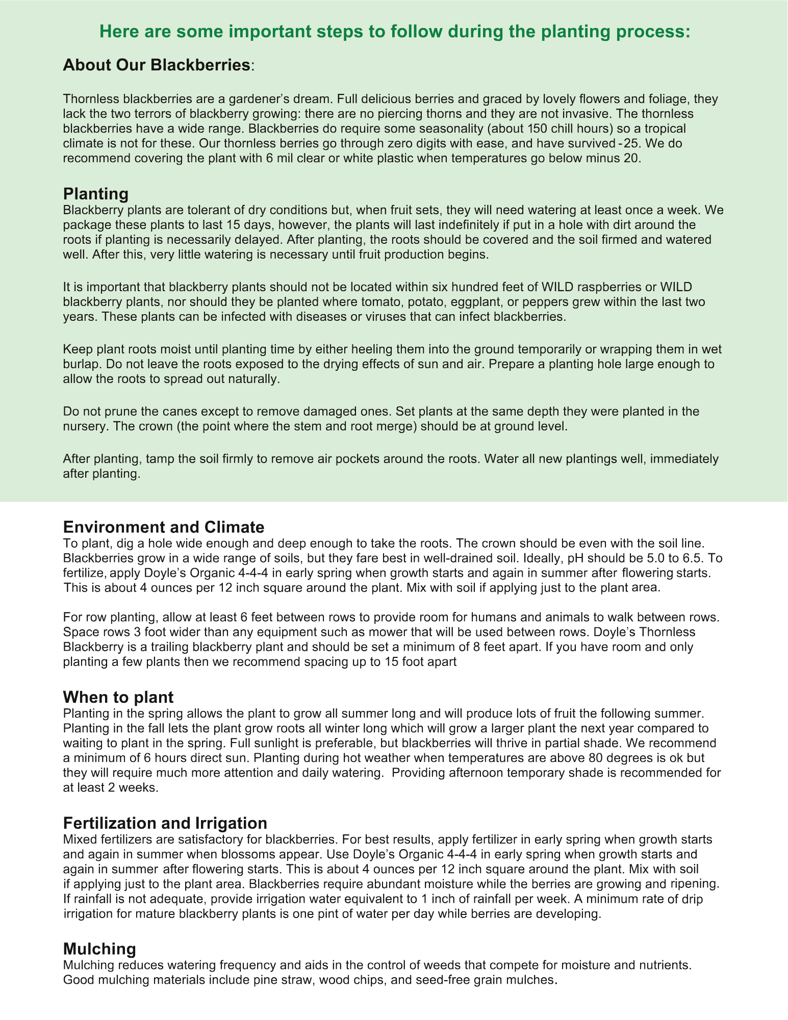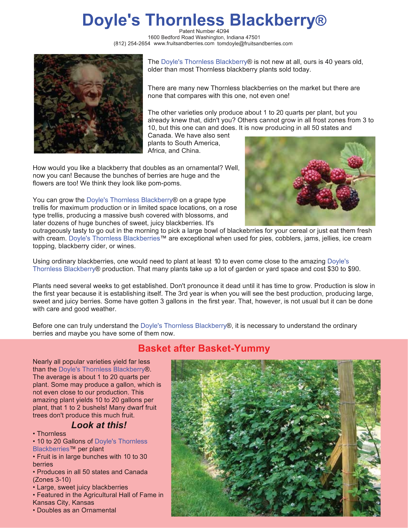Doyle's Thornless Blackberry Plants have been providing gardeners with a better thornless blackberry plant for more than 40 years.