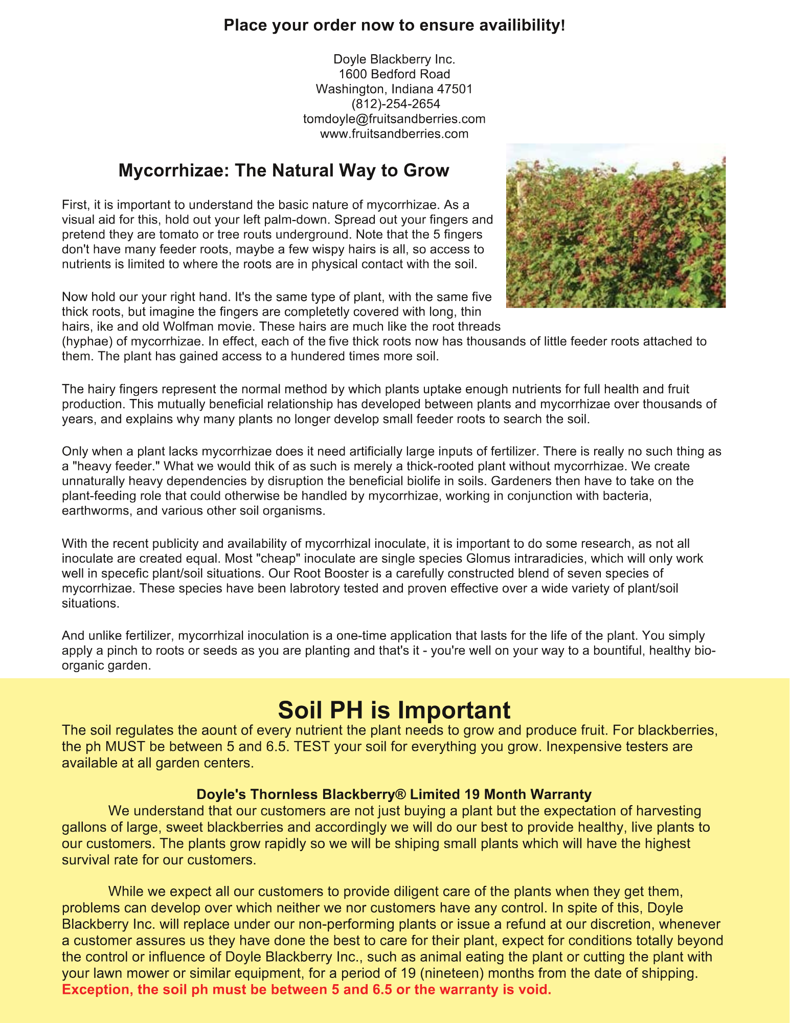 Quantity discounts available! Buy 5 or more blackberry plants and we'll send you a free cookbook!