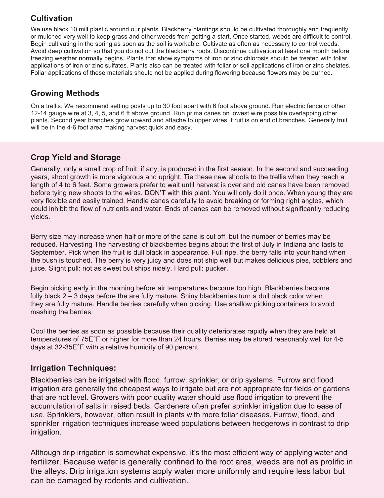 - Yield 10-20 gallons of SWEET, juicy blackberries per plant once established